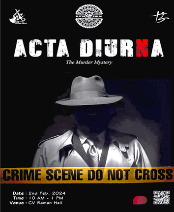 ACTA DIURNA is back to take you amidst all suspense and thrill. In this event, you are served with a mind-tossing murder mystery with all its characters and hints. You, being a journalist/detective, are trying to solve the mystery by asking your queries from the characters of the plot enacted by us.