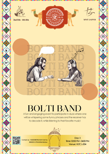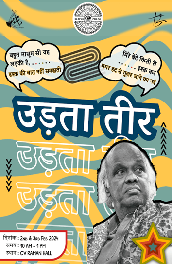 An out-of-the-box event where participants will be engaged in a Hindi / Urdu literature-based activity. This will be a 2 tier segment. The 1st segment will include a phrase from some literary works [Sher (s)/ Dohas/Couplets] from renowned writers and poets. The participants have to complete them in creative and ingenious ways. The second segment will include some of the commonly used Hindi / Urdu terms and the participants will have to define them and use them in a couplet of their own.