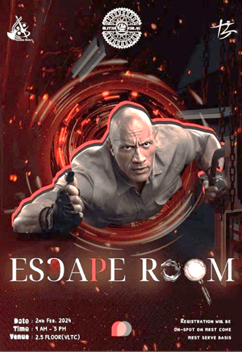 You have to escape the room at a given time by solving puzzles and quizzes. It is organized by the Cultural Society.