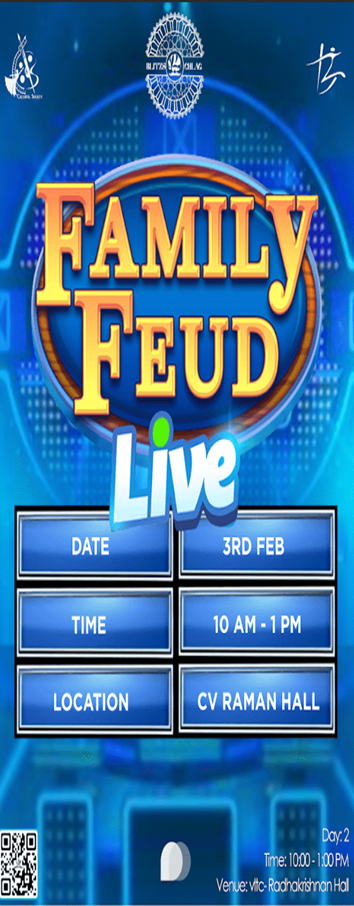 Join us for an evening overloaded with fun and excitement with our very own version of the popular game show 'Family Feud'! Just like on the show, two families take turns trying to guess the most popular answers to survey questions. The host presents a survey question, such as 'Name something you put on your pancakes,' The first family has a set amount of time to come up with as many answers as possible. Each answer is worth a certain number of points. The family with the most points at the end of the game wins. But wait, there’s more! In addition to the main event, we will also have exciting prizes for the audience. Whether you're competing or just spectating, there's something for everyone to enjoy. So gather your friends, team up, and get ready to feud! This event will be a memorable evening filled with laughter and friendly competition. Don't miss out - we hope to see you there.