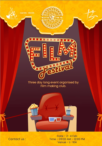 International short film-making competition is a three day long event organized by the Film Making Club.