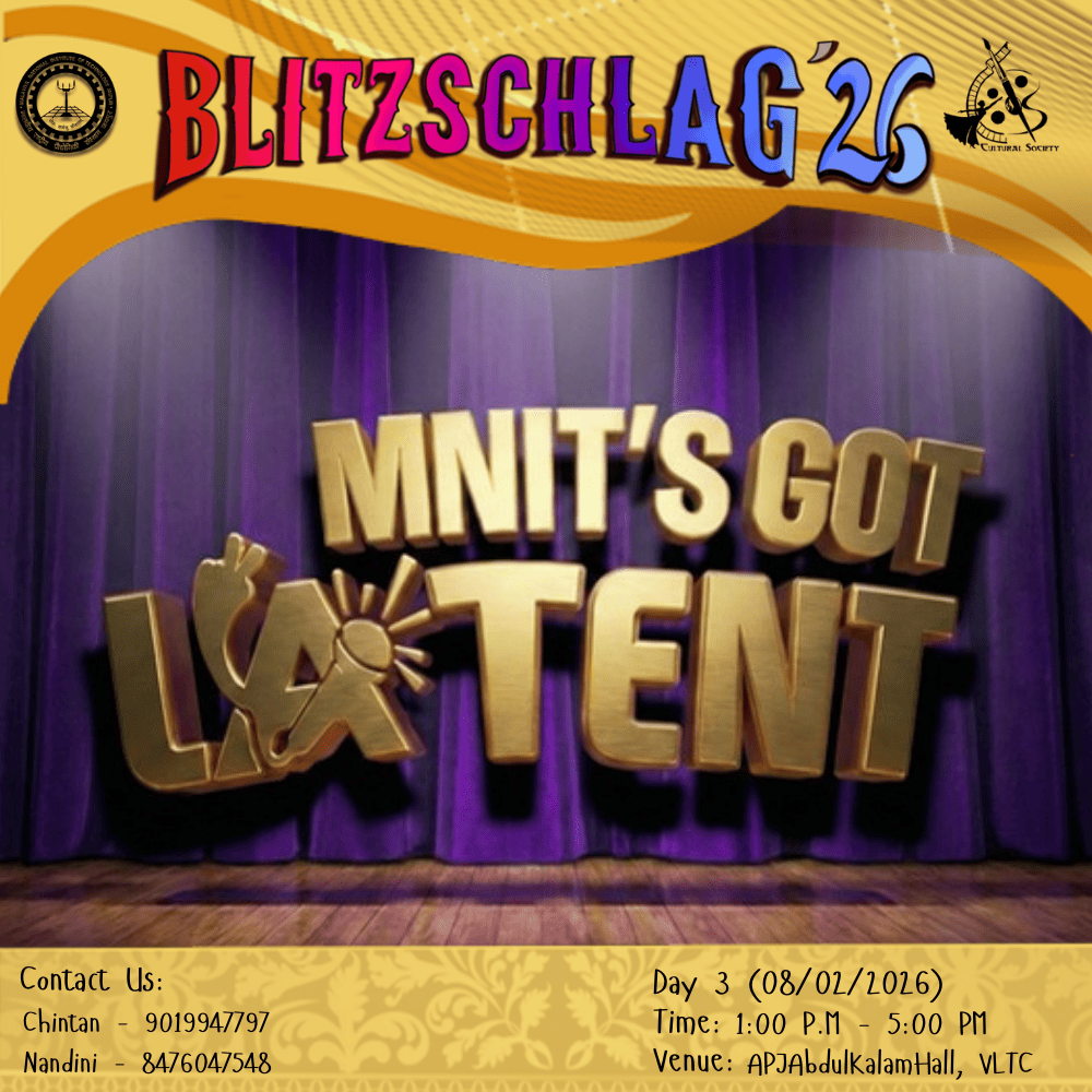 MNIT’s Live is an exciting and interactive debate event designed to test participants’ spontaneity, creativity, and communication skills in a fun and friendly environment. Participants compete in teams on light-hearted and engaging topics that are revealed on the spot. Each debate features two teams of three members (3 vs 3), promoting teamwork, quick thinking, and effective expression within a fixed time limit. Speakers are expected to present sharp arguments and respectful rebuttals while ensuring equal participation among all team members. The event strongly emphasizes fair play, mutual respect, and clean communication, making it an enjoyable and enriching experience for both participants and the audience. Teams are evaluated based on content quality, creativity, clarity of expression, teamwork, and overall impact.