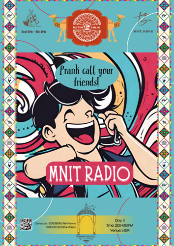 "TV gives everyone an image, but Radio gives million images in zillion brains" If you are a visionary, self-assured, passionate, energetic, and a captivating performer then this is your time to shine. MNIT brings up a platform for you to exhibit your talent, to showcase your stage presence, to awaken the artist within you, to make your talent come out with flying colours and to open up new horizons for your creativity. The "MNIT Radio" undoubtedly is going to open up opportunities and an arena for you to showcase your out your talent. Register to "Bring Up the Artist Within You."