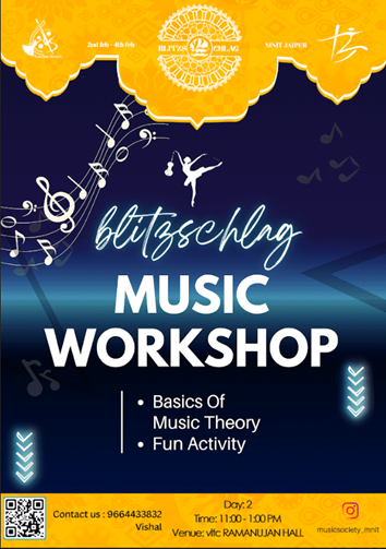A workshop which may include basic musical training or music production workshop where participants may be asked to bring their own instruments or use the extra instruments to take part in the workshop.