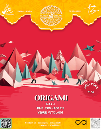 Twist, turn and fold the papers and you can have a beautiful world around you with origami. Creative arts club is holding an origami competition where you can show your creativity in this unique Japanese paper folding art. Join us in this fun war of folds. Participants will be given a base and origami papers and will be asked to create a scene or a story with them.