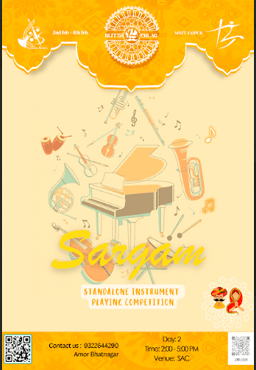 A Standalone instrument playing competition. where participants must choose a song to play on their instrument and they will be judged on the basis of their technicalities and resemblance. Melodic and percussion instruments will be judged separately.
