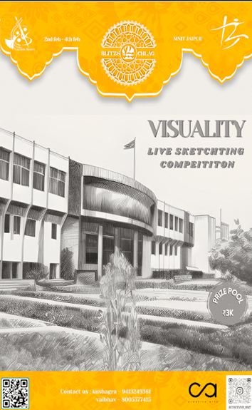 "Visuality"; See the world through the eyes of an Artist.... Have you ever come across a scene or view that appealed to your eyes so much that you thought of capturing it. Then The Creative Arts Club of MNIT is here to give you the opportunity to show your creativity in an event of live sketching and showcase it in a way you see and perceive through art. Come and unlock the Pandora box of your creativity and talent and join us in this live sketching event. A Live Sketching event will be held at an open place in the campus.